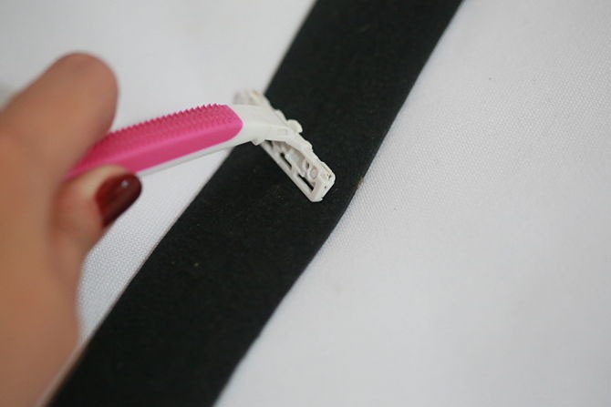 - مرر الشفرة على موضع الرجل من بنطلون الجينز من 10-20 مرة في الاتجاه المعاكس للاتجاه المستخدم عند الحلاقة.